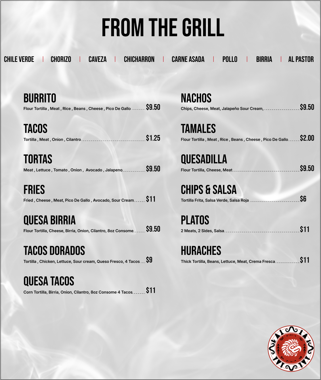 BURRITOS – TACOS – TORTAS – HURACHES – NACHOS – TODO FRITO –